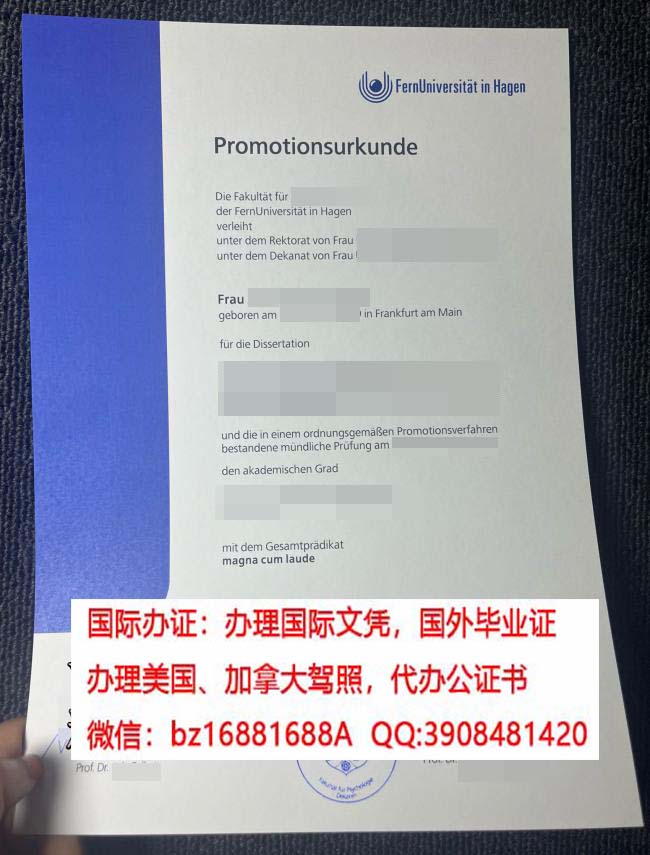 哈根远程大学博士证书....